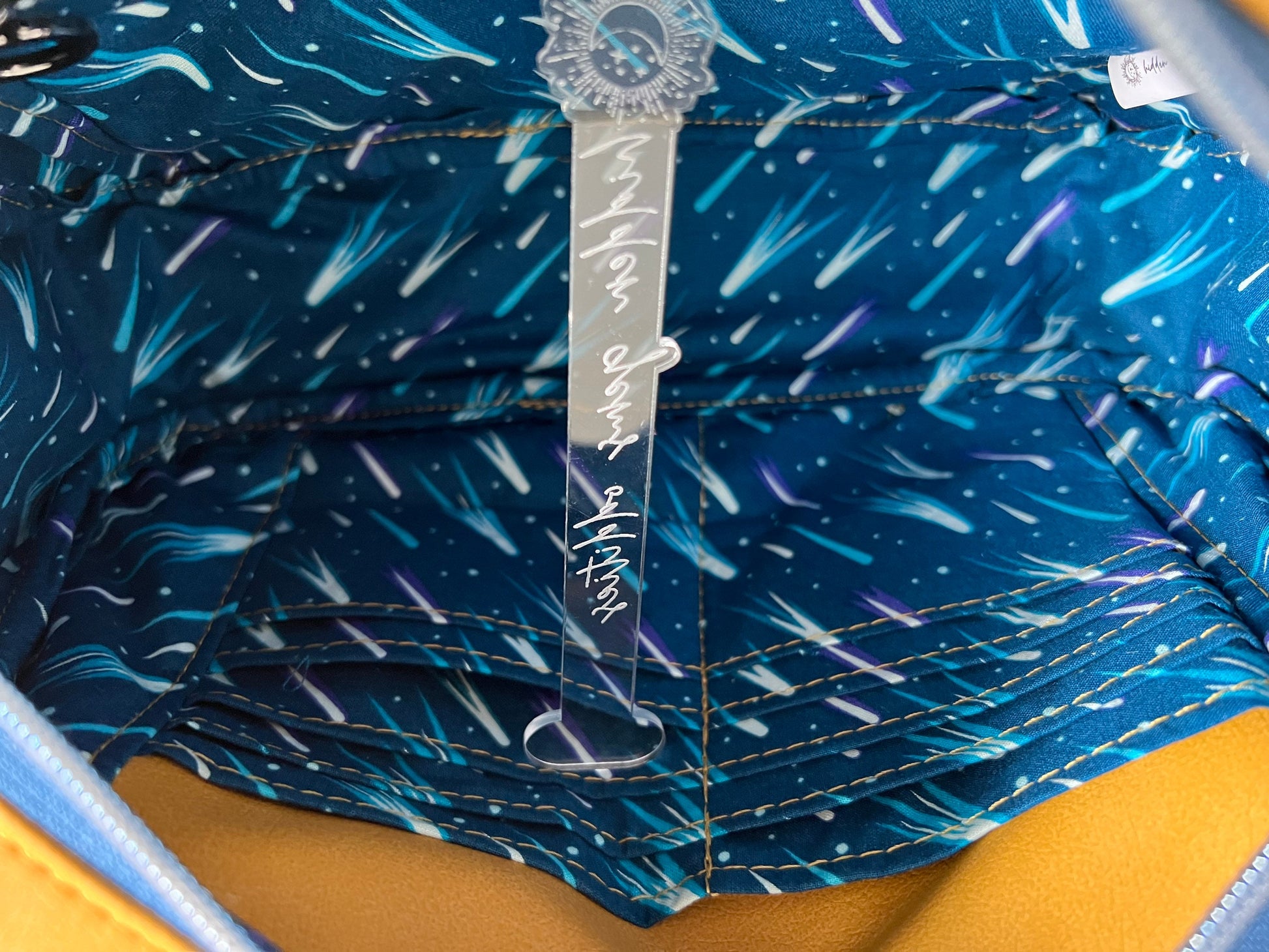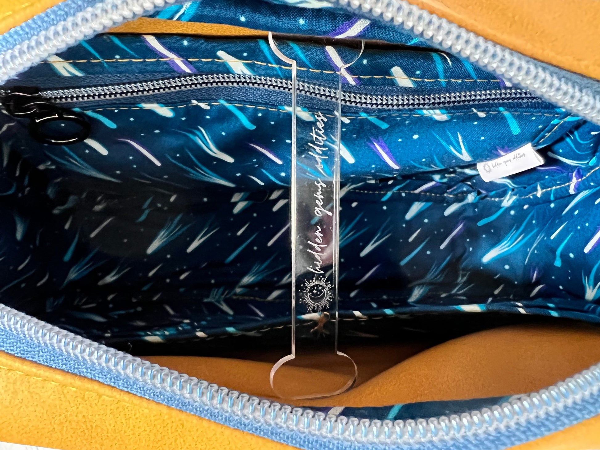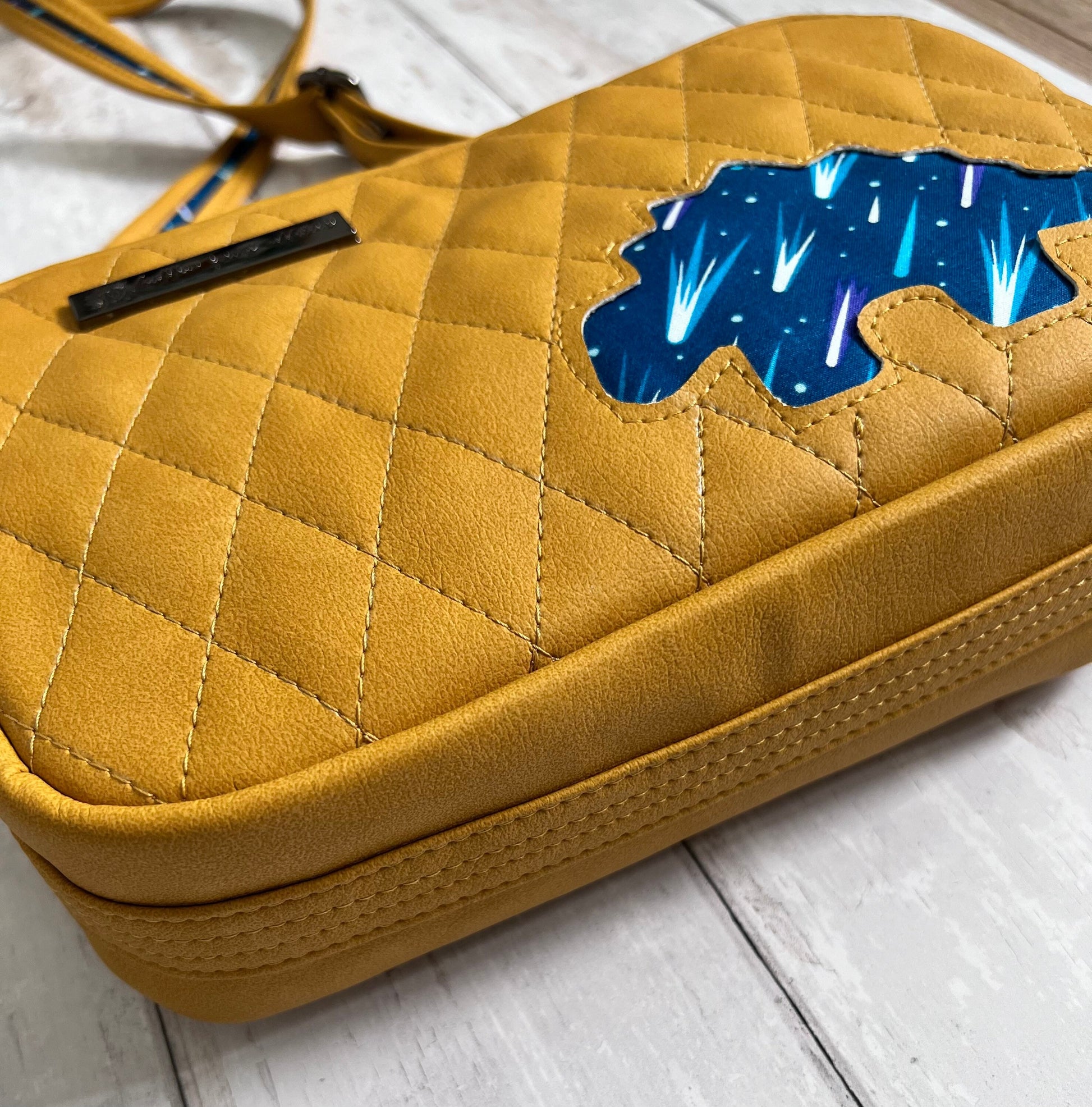 This bag is is all about dinosaurs with a hopefully not to soon comet print accent! Featuring Stephy the Stegosaurus, this bag will protect and organise all your daily supplies. Perfect gift to celebrate any science-minded woman in your life, or any grown up dinosaur lover!