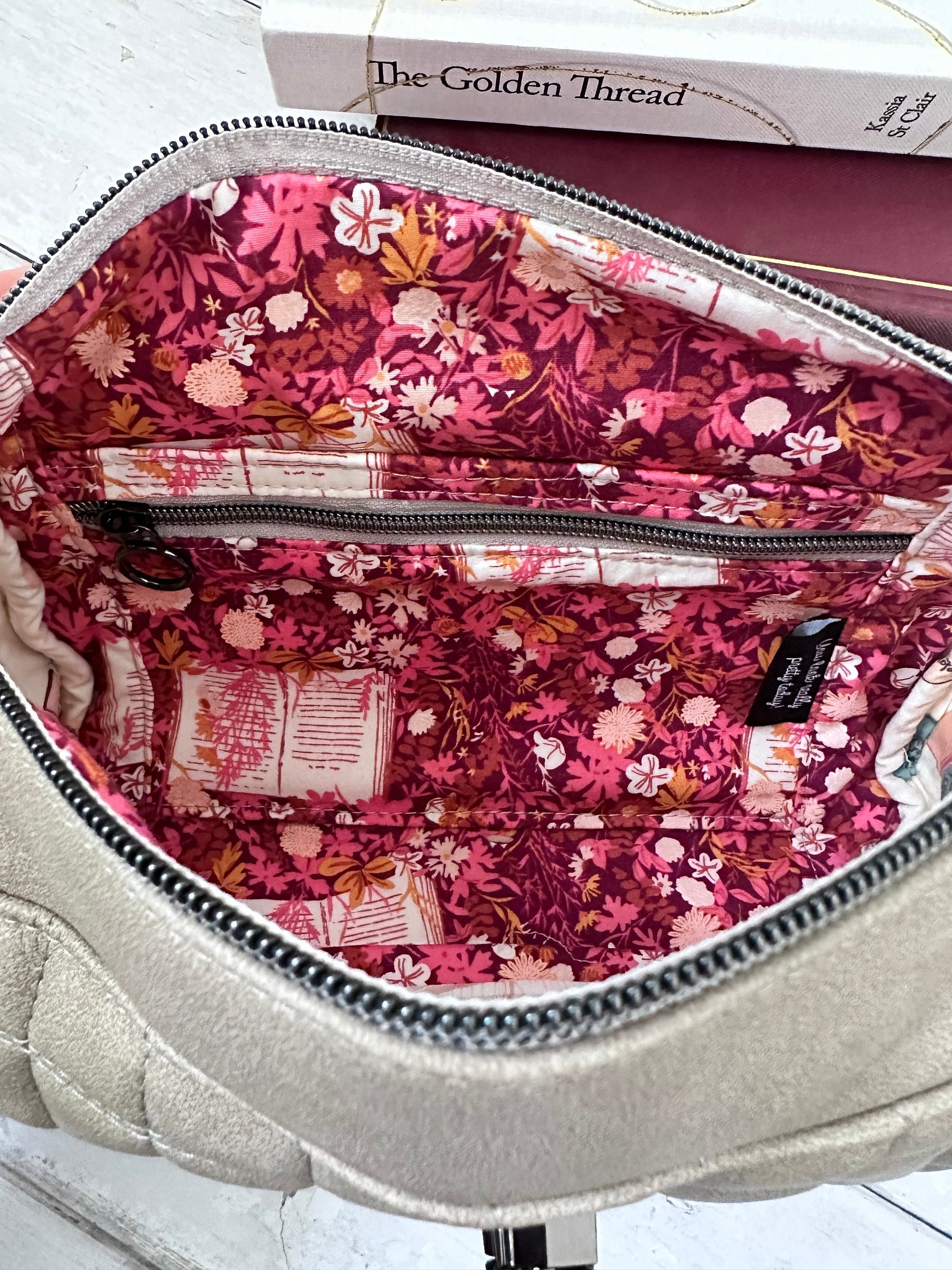 Quilted handbag, barrel bag, gift for reader, bookish gift, crossbody bag, vegan handbag, gift for teen bookworm, medium crossbody