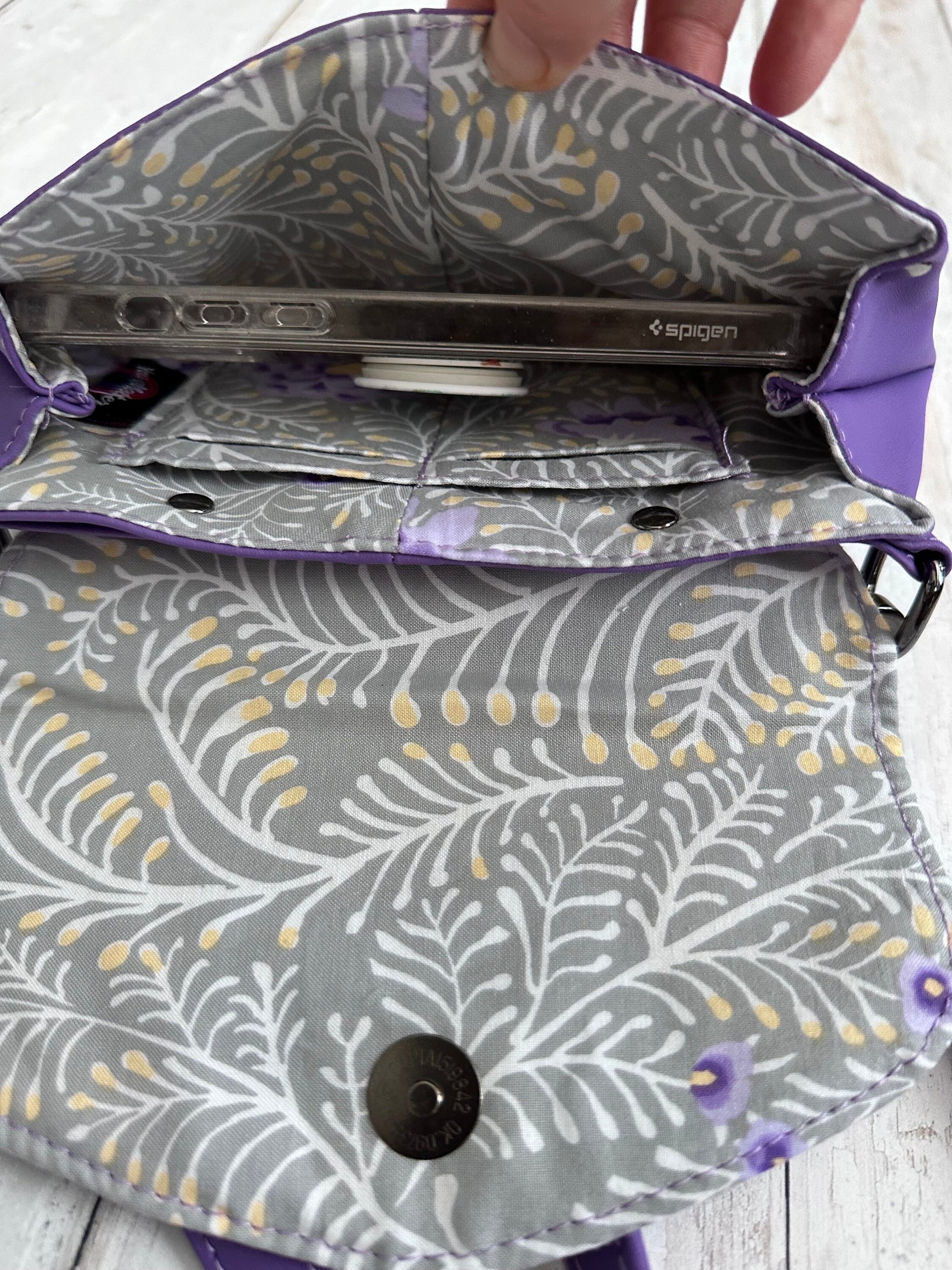 This vegan faux leather crossbody bag is the perfect going out bag when you just need your phone, keys and a couple of essentials. It fits an iPhone 14 Pro Max, and has 4 internal card slots. The secure magnetic closure keeps everything safe.