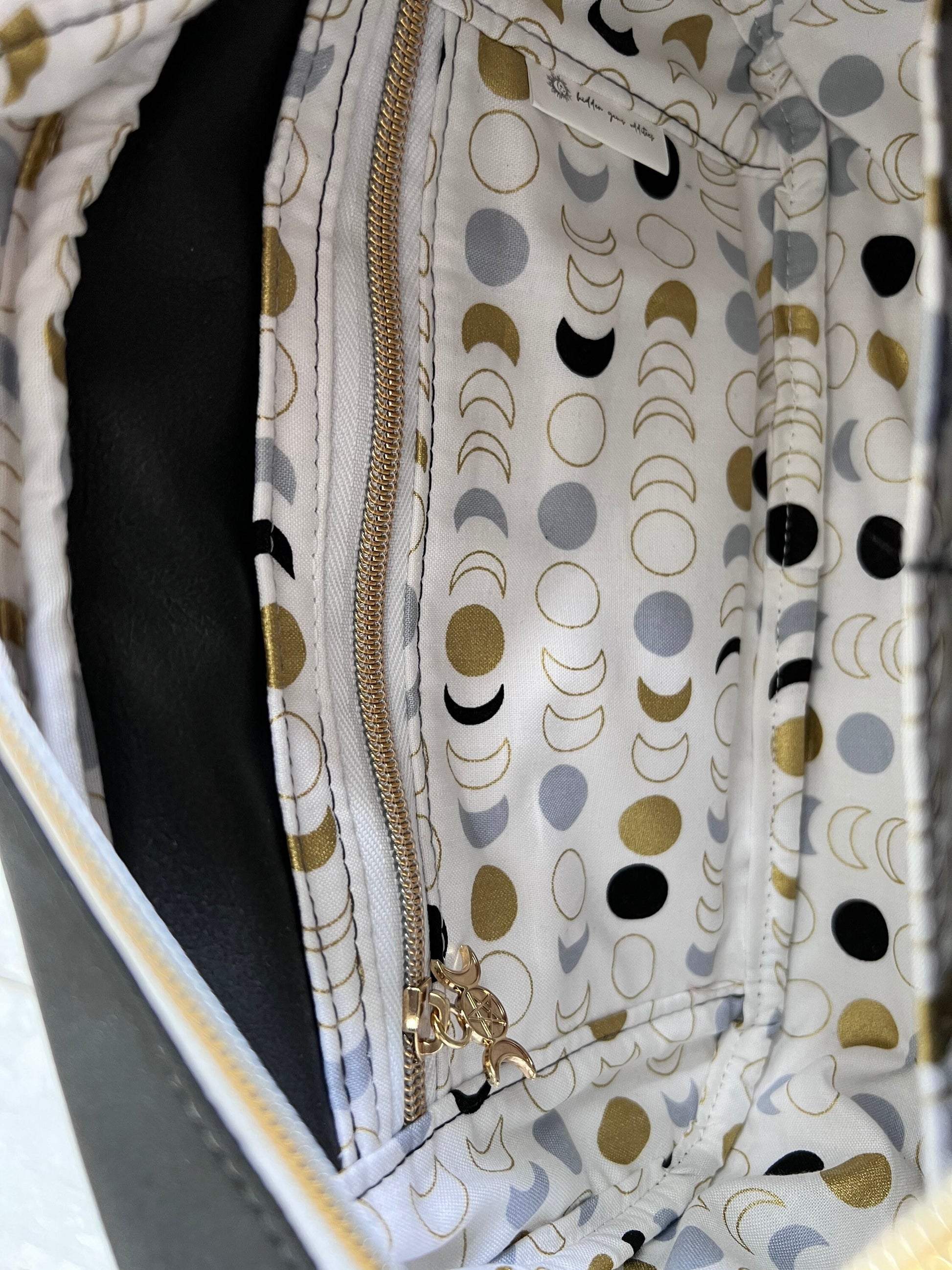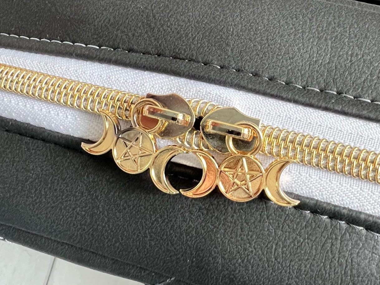 This bag is is all about the moon! Celebrate the power of the moon and all she represents with this Luna bag. The zip pulls feature moon phases/the triple goddess. Perfect gift for an witchy women, astronomers or astrologers on your life!
